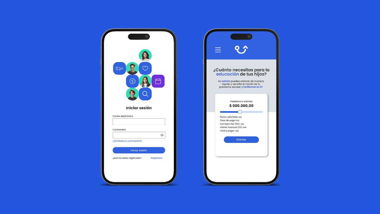 Uelcon es una marca digital y plataforma web para facilitar préstamos educativos con una experiencia accesible, confiable y moderna.