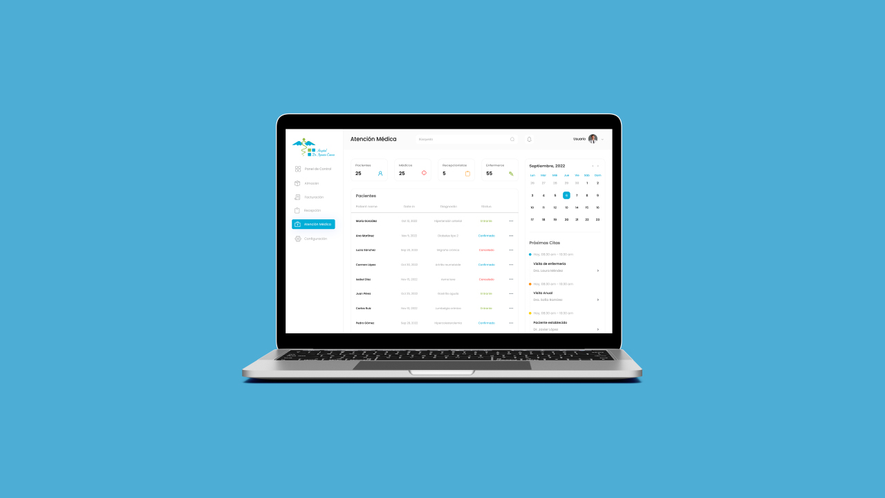 Desarrollo del "Sistema de Control Hospitalario" para modernizar la gestión digital y optimizar los procesos internos de un hospital.