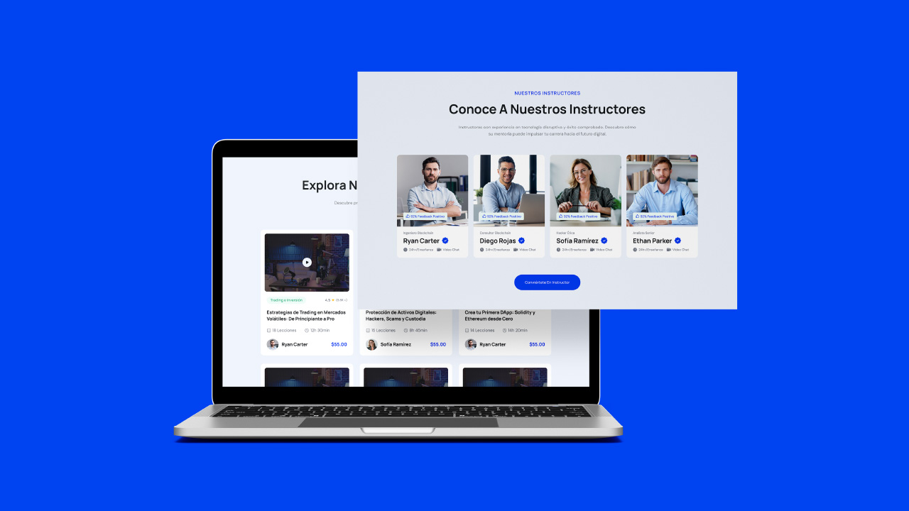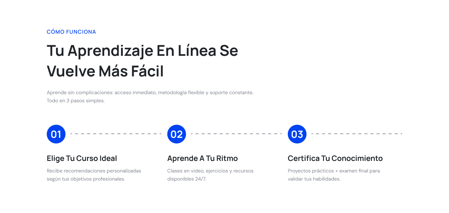 La estrategia combinó una identidad visual moderna con gráficos representativo, paleta vanguardista y tipografía tecnológica, una plataforma UX/UI intuitiva con rutas de aprendizaje claras para impulsar el avance educativo.